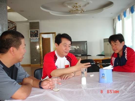 金志扬主教练与韩国大学生冠军队的教练员进行交流