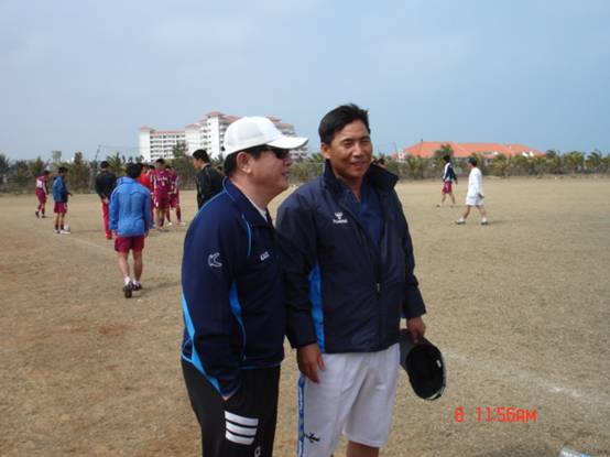 杨宾副书记一行还亲切慰问了负责冬训的金志扬教练、王力教练、李海河教练,感谢他们为我校足球建设所做的贡献,金志扬主教练也就冬训的整体情况向杨宾副校长进行了汇报。