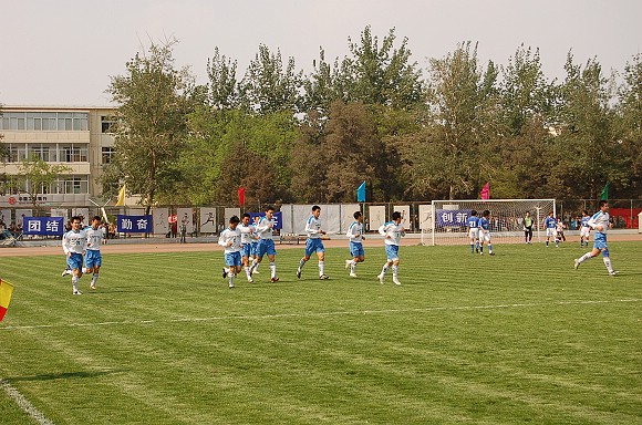由于第一轮比赛轮空,所以此场比赛也是我校足球队的首场比赛,对手为北京巴士队,这场同城球队的“德比之战”吸引了5000多名球迷到场观战。