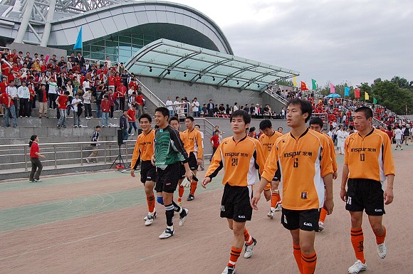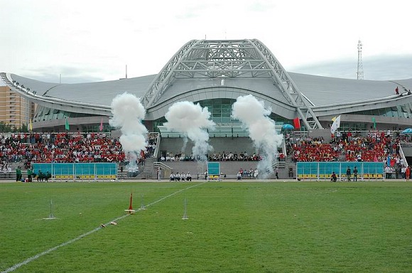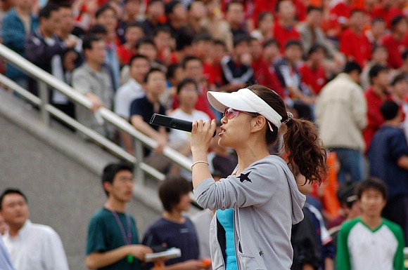 随着开场时50名轮滑志愿者挥舞校旗、院旗、彩旗绕场一周,现场气氛一下子被彻底点燃,那场面是相当大! 锣鼓喧天,掌声齐鸣,彩旗招展,人山人海!在此气氛下,我校足球队上半场即以1:0领先。