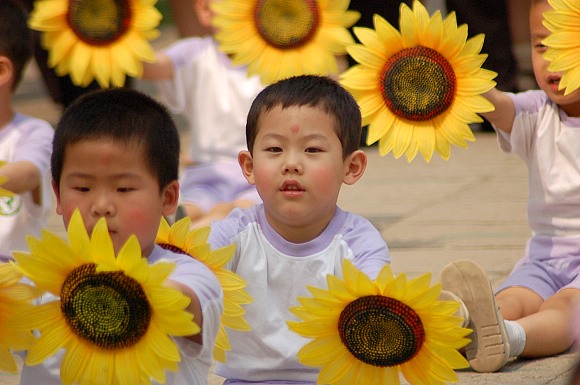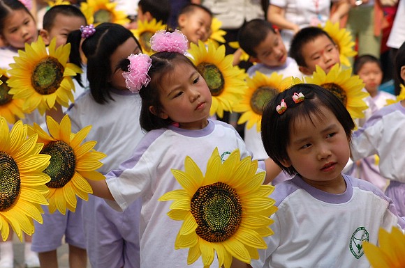 中班小朋友也为大家表演了体操“葵花娃娃”,葵花朵朵就像孩子们张张可爱的笑脸。
