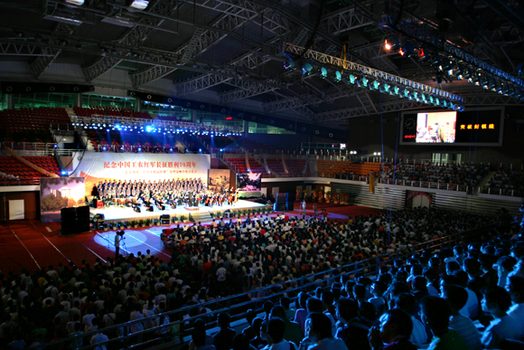 作为我校2006年艺术节的重头戏,9月21日晚上,长征组歌大型交响合唱音乐会在体育文化综合馆隆重举行。在长征胜利70周年之际,以长征为主题的音乐会,不仅让观众得到艺术上的享受,更带领观众重温和回顾了那个硝烟弥漫、充满着理想与激情的革命年代,弘扬了爱国、爱党的情怀。