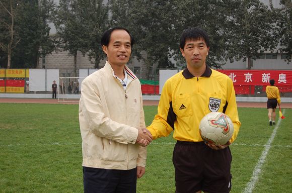 这场足球友谊赛由我校体育部负责组织与安排,并邀请了全国著名金哨奖得主陆俊担任主裁判。