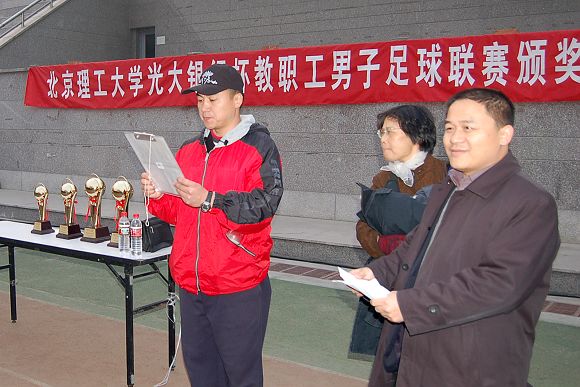 在11月19日举行的米兰milan官方网站“光大银行杯”第二届教职工男子足球联赛闭幕式上,党委副书记、工会主席侯光明到场并作了讲话,光大银行世纪城支行行长罗静、行长助理李亚林到场并观看了最后一轮比赛。