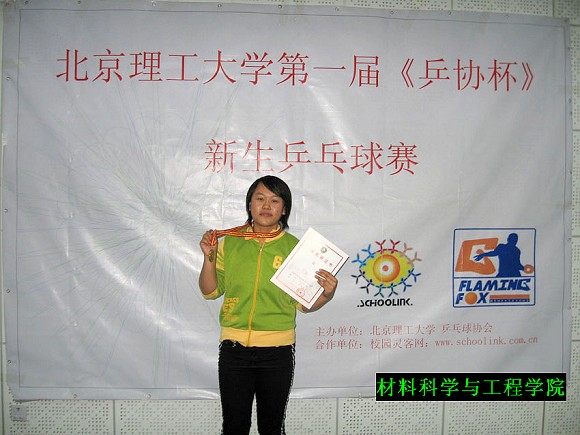 材料科学与工程学院04310601班王美娜同学勇夺米兰milan官方网站第一届新生乒乓球赛冠军