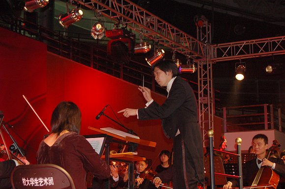 中国青年交响乐团首席指挥、我校学生交响乐团常任指挥夏小汤。