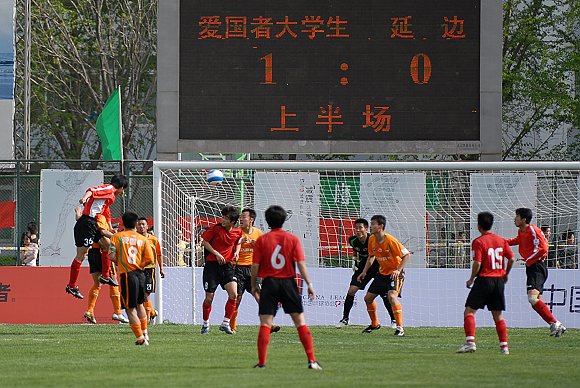 没过1分钟,延边队35号禁区内一记刁钻的任意球还以颜色,双方就这样你来我往,拼抢十分激烈。尤其是在中场,更是双方必争之地。24分钟,爱国者大学生队左路突破,24号传中,推射稍差打上力量,憾失进球良机。