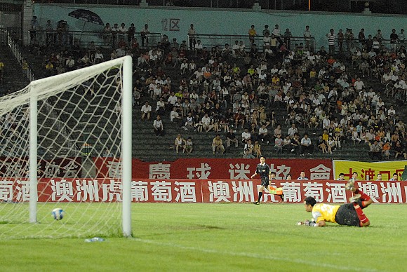 “实力不济、经验不足,输球太正常不过了。”金志扬的话似乎有些先知先觉。重庆力帆与米兰的比赛被安排在晚场举行,由于重庆地区气候闷热,再加上首次参加晚场比赛,学生军的小伙子们多少有些不适应。他们在上、下半时分别被力帆队外援桑托斯、范冬青打入两球。不过输球的老金赛后却很自豪:“一次通过定位球,一次通过界外球,力帆两个进球都是利用我们经验不足,但是队员们自始至终都没有放弃过争取破门。最后力帆队两名队员抽筋了,我们没有一个抽筋啊。魏新赛后带头向我们致敬。”