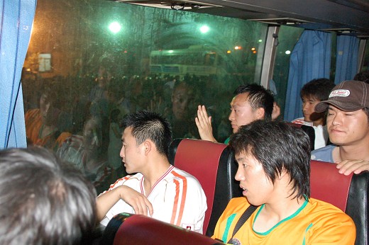 赛后部分大学生球迷甚至追随大巴到球队驻地一求金指签名。