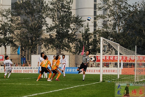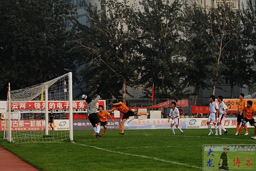 开场前10分钟内,客场作战的毅腾即发动全面攻势,占据场上主动。4分钟时,毅腾外围一脚远射,偏出球门,但是为学生军的防守提了一个醒。第6分钟,毅腾队右路再次发动快速进攻,逼得角球,12号张靖洋主罚,4号于涛抢到前点补射,球稍稍高出横梁。随后爱国者发动右路进攻,一个富有创意的直传,可惜前场没有球员包抄。第9分钟,毅腾连续获得两次角球,一次被爱国者队后卫破坏,另一球被于飞在争顶中将球顶飞。