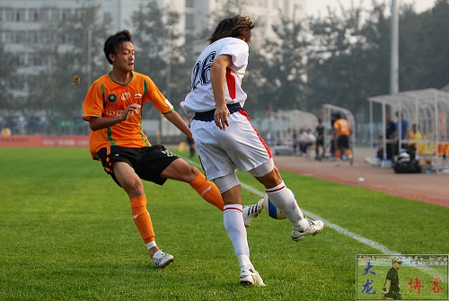 38分钟,韩国外援韩济光一个漂亮的回敲,在左路斜传禁区,21号前卫张淼甩头攻门,球擦着门柱打在边网上。