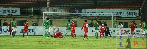 可惜的是皮球并未扑远,八一队再次传中,利马门前头槌攻门,皮球再次以弧线越过刚刚回位立足未稳的孙程头顶将球打入,2比1!八一队把比分反超。
