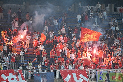 。沉寂多时球迷疯狂了,刚刚还有人在喊“李晓下课!”,现在却放起了焰火!