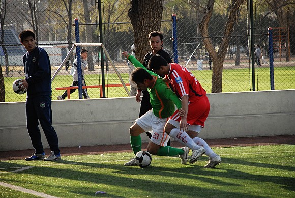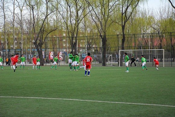 3月25日下午,2008年李宁中国大学生足球联赛北京市赛区预赛在北京体育大学开幕,首先由米兰milan官方网站(绿)VS中国人民大学(红)。在去年的北京市大学生甲级联赛的决赛中,由于米兰两线作战,头天刚刚打完对广州医药的比赛,加上替补阵容发挥也不好,最终以1:5输给了人大,屈居亚军。