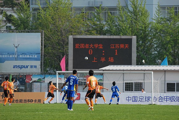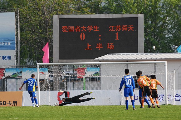 第88分钟,爱国者队获得前场任意球机会,袁微主罚至禁区内,江苏队不慎打进乌龙球。最终舜天在客场3-1完胜学生军排名榜首。