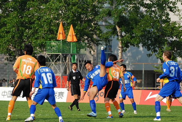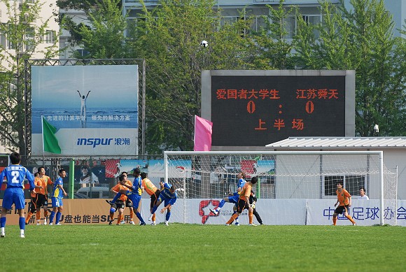 第30分钟,爱国者队姚远禁区前再次断球成功,爱国者队韩国留学生外援朴天龙头球攻门,皮球已经绕过守门员直奔球门右侧。
