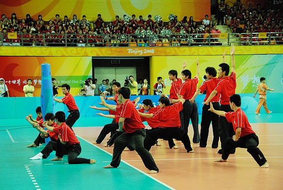 不同的民族风情韵味使现场观众群情激昂振奋,展现了中国56个民族手拉手、心连心喜迎奥运的画卷。