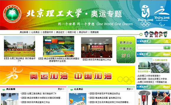 米兰milan官方网站奥运专题网站已经开通,专题网站介绍我校承办奥运会和和残奥会的赛事情况,展示我校师生员工服务奥运、奉献奥运的精神品质与良好风貌,宣传我校为实现“绿色奥运、科技奥运、人文奥运”的奥运理念做出的贡献和取得的成就。网站包括“奥运新闻”、“心系奥运”、志愿者风采”、“场馆介绍”、“奥运知识”、“观赛指南”等板块。
