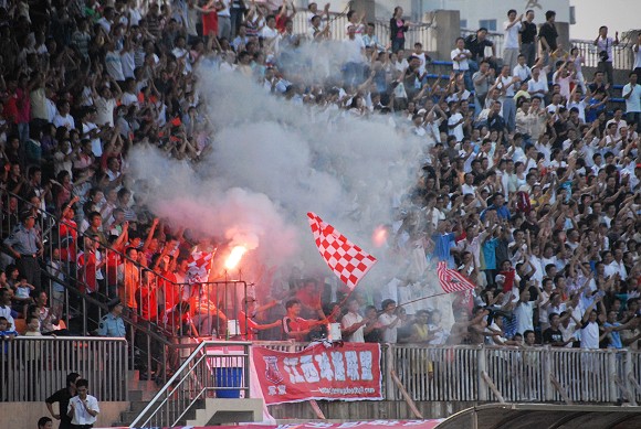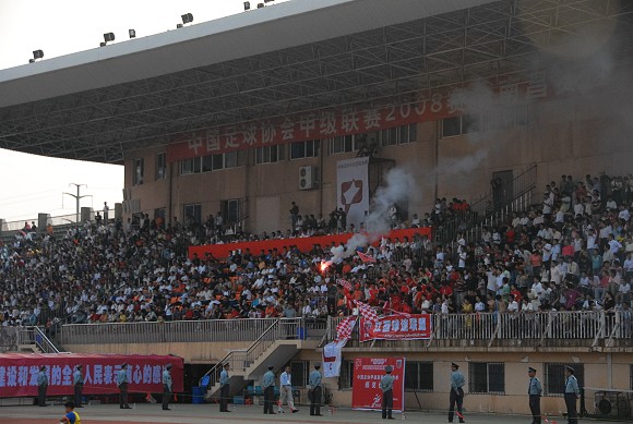 南昌球迷再次燃起了焰火庆祝重新领先!