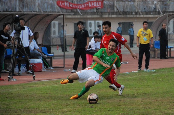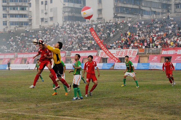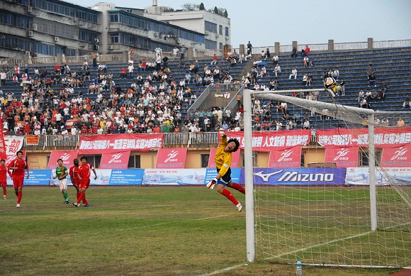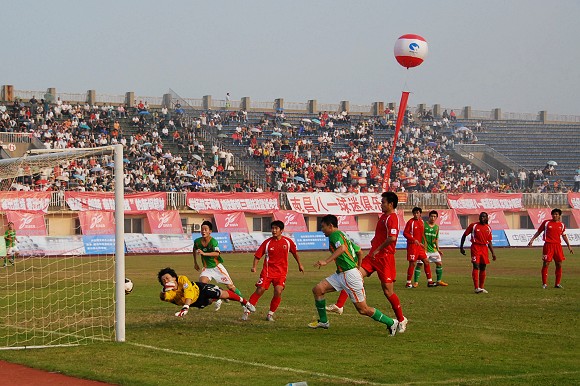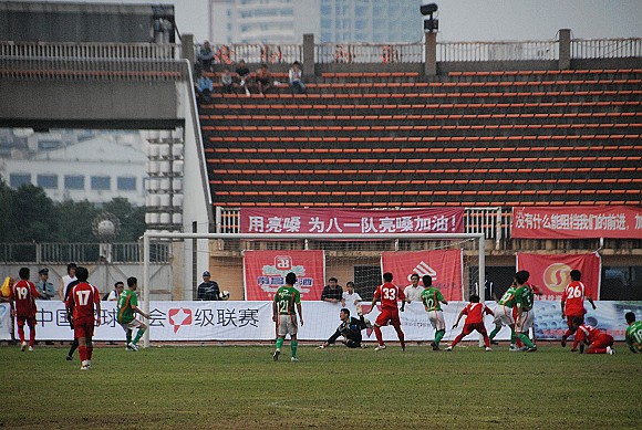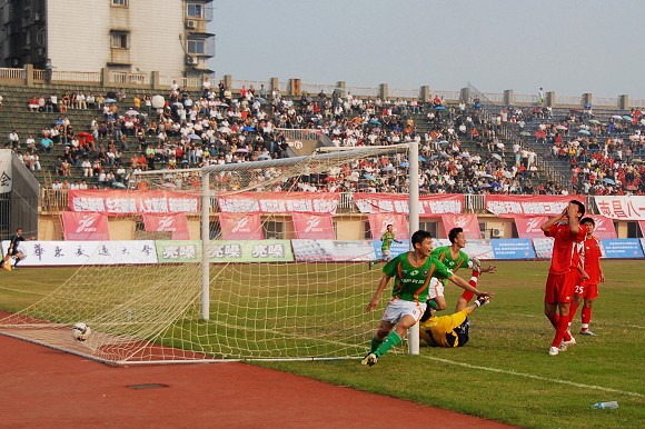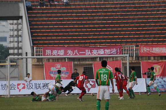 可惜进得快,丢得也快,1分钟后,硝烟依然尚未散去,南昌八一门将的一次冒然出击与本队防守队员撞在了一起。