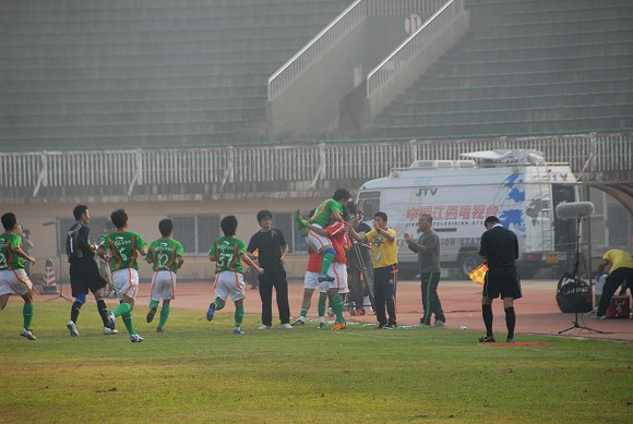 这脚世界级水平的“削射”让场上比分变成了3:3平,连场边的保安大叔都在大呼比赛精彩、过瘾!如果中超中甲的比赛都能达到如此精彩激烈的水平,何愁没有观众来赛场加油助威?!