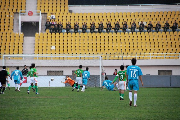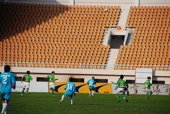 第63分钟,海信地产获得任意球机会,主罚的伊利耶再次选择直接攻门,但今天的横梁似乎偏偏和他作对,皮球再一次高出。