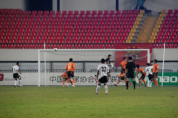攻入对方一球之后,北京爱国者大学生队继续向对方大门发动猛攻。第16分钟,杨思源在前场左路无人防守的情况下远射打高。处于被动挨打的上海东亚队只能依靠前场定位球骚扰对方大门。第22分钟,王佳玉右路的角球开到点球点附近,门将孙程单拳将球击出禁区。4分钟后,上海东亚队获得了第一个前场任意球机会,王佳玉右脚传入禁区,曹慧康在门前狮子甩头,皮球高出横梁。