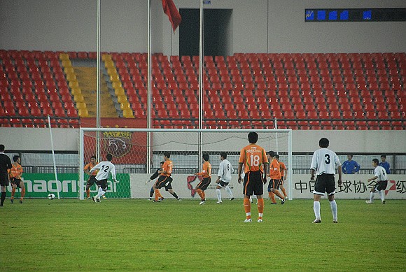 北京时间10月25日19点45分,已经下了一整天的淅淅沥沥的小雨一直还在下,2008年中甲第23轮一场焦点大战在上海金山足球场打响,上海东亚队在主场迎战北京爱国者大学生队。经过90分钟的激战,北京爱国者大学生队客场1-0获胜结束了6轮不胜的尴尬,与倒数第二、三名的烟台毅腾队和北京燕捷圣队继续保持1分的差距。不过客队为胜利付出了惨重的代价,张淼和姚远分别吃到本赛季第三张黄牌,下轮双双停赛。上海东亚队结束了4轮不败后,彻底失去了冲超的希望。