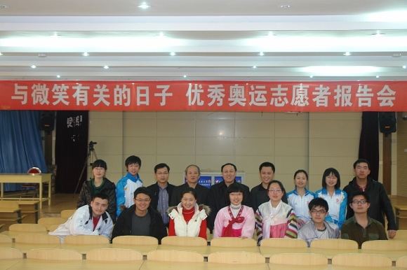 在报告会上,来自材料学院的张鹏、人文学院的黄霆、设计学院的计小莹,分别用生动幽默的语言,分享了自己的奥运志愿服务经历和收获。他们用一个个小故事讲述了在奥运志愿者大家庭中相互支持和帮助的《我的150个天使》,志愿者的在工作中那些《酸酸的快乐 甜甜的忧伤》,以及在20岁时那一年《1/20的收获》。报告团的“替补成员”校团委宣传调研部部长张巍老师,代替正在准备博士生入学考试的吴曼,讲述了“志愿者平方”是如何做到了《平凡的付出“平方”的爱》。