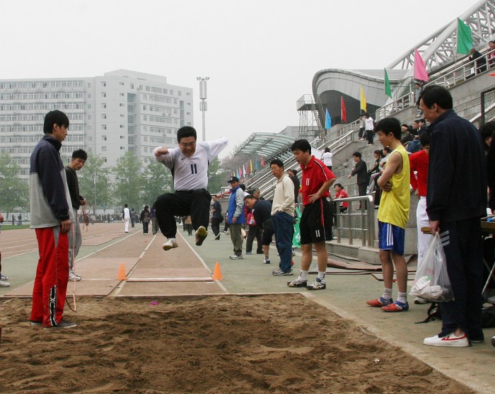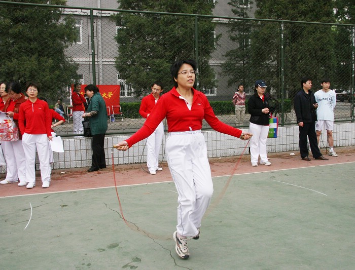 赛场上,运动健儿们精神抖擞,充分发扬了顽强拼搏、积极进取的体育精神,尽情地抛洒激情和汗水,挥舞青春和热情。跳高场上,健儿们轻盈地飞越横杆,裁判不断调高高度;跳远场上,助跑、加速、腾空、跳跃,教职工健将们娴熟的动作,不断地刷新着刚刚抹平的沙面;教工男子四百米接力赛竞争激烈,红色的跑道上,你追我赶,奋力向前;丰富多彩的趣味比赛中,大家切磋技巧,笑语不断......