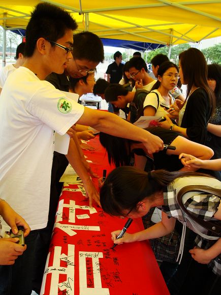 4月22日,我校珠海学院举行422世界地球日“善待地球,敬畏生命,我们与环保同行”签名活动暨环境保护协会成立仪式。珠海学院党委副书记、副院长李绍勋参与了签名活动,并指出宣传环境保护是很有意义的活动,号召全院师生加入环保的行列,为建设美好环保的校园做贡献。