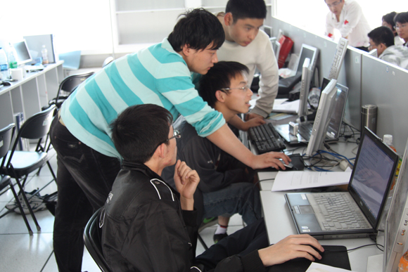 是学院领导、老师的支持和指导,是学长的关怀和引导。五一集训期间,学院为集训队成员准备了被褥、洗漱用品、水果等一系列生活物资,以尽可能改善集训条件,陈书记、陈杰浩老师多次到机房为同学加油打气,鼓励他们在困难面前迎难而上,提高自身技术水平和创新能力,成为祖国的栋梁之才。整个集训期间,科技类社团的06级学长始终陪伴在集训队员的身边,他们放弃了假期的休息,和集训队成员们“同吃同睡”,时刻准备为学弟们答疑解惑,排忧解难,12位学长每天轮流值班,督促大家努力工作。同时,在帮助07级集训队员的同时,学长们也以饱满的状态投入到自己的竞赛工作中,为学弟们起到了很好的带头作用。学长们的身体力行为集训队员们带来了极大的动力,而学长的“锅炉房经验”更教会了他们如何在艰苦环境中保持良好心态,保持高效的工作状态。