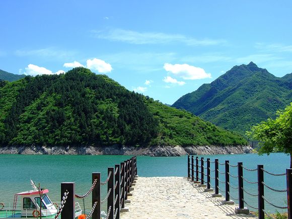 雾灵山处于北京市密云区新城子镇,座落在闻名遐尔的司马台长城,是离北京市最远的一个村镇。一进雾灵山,江总书记的题词:“湖光山色,尽收眼底”赫然在目。廖廖数语,把这里的景象刻画得淋漓尽致。这里自然环境优美,人文环境健康和谐。雾灵湖岸依山傍水、气候宜人,具有天然水碧、树茂花香之山乡美景,若在湖上游览,大有“舟行碧波上,人在画中游”的欲仙之感。