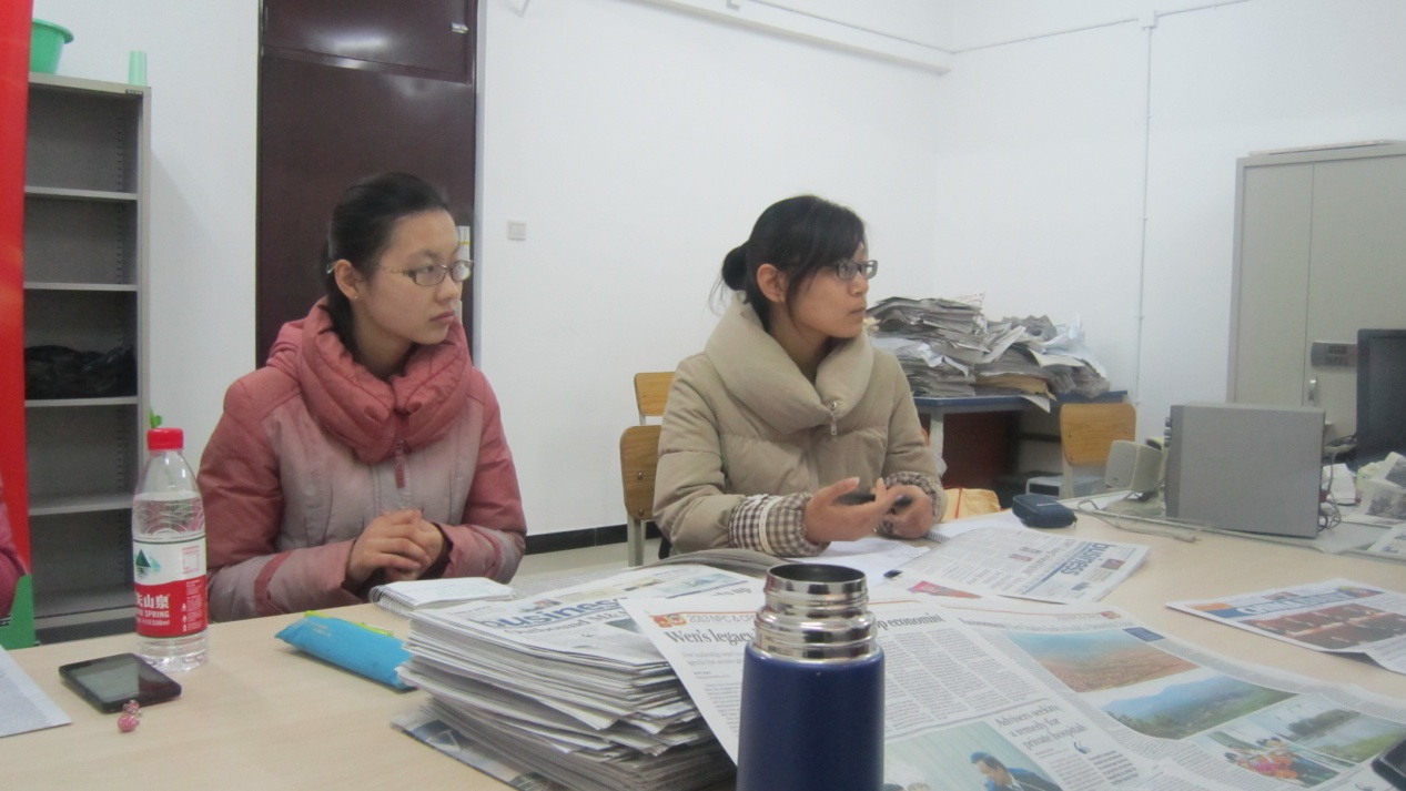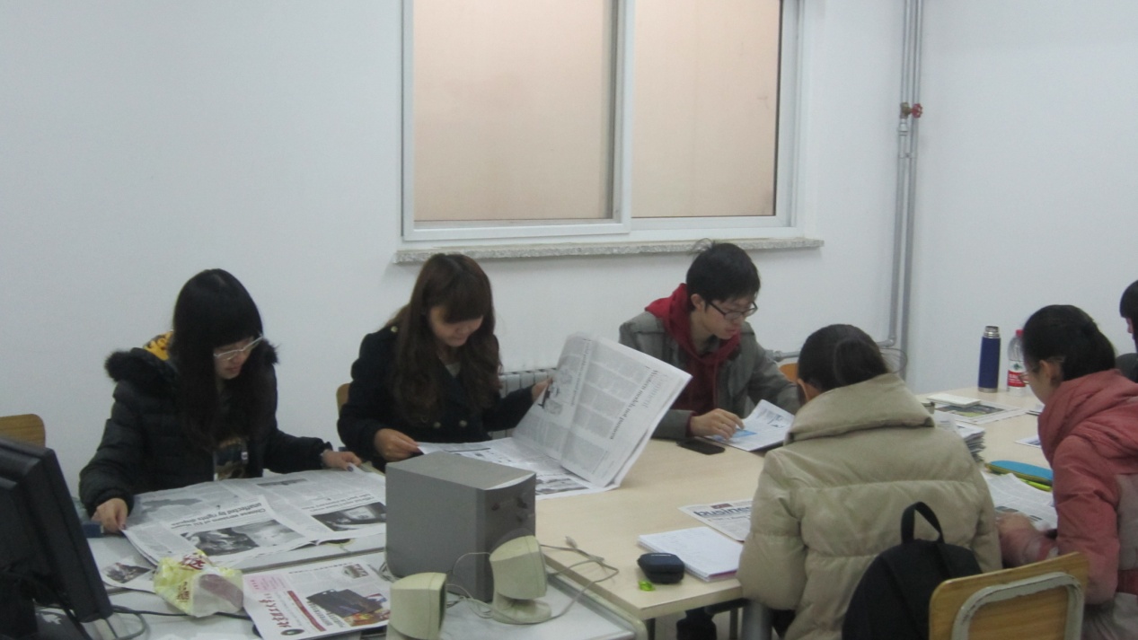 赵琳老师为研讨会准备了英文版的《中国日报》等学习材料。首先,同学们研究了英文报纸上的标题撰写。通过对报纸上标题的分析,发现了新闻标题有常用一般现在时,少用虚词,多用主动少用被动等特点。通过讨论,同学们总结出了英文标题的一般特征,对新闻标题的概念有了新的认识。其次,同学们又拿出米兰milan官方网站校报作为参考材料进一步分析了一般新闻标题的撰写。不管使用何种语言,新闻标题的基本属性是不变的,如简短精炼,醒目新颖,内涵丰富,同时要能吸引读者的注意力。通过对比校报和中国日报的新闻标题,新闻社的成员们更加深刻地了解了新闻标题的一般特征,也发现了中英文新闻标题的不同之处。例如,中文是动词性语言,文章标题一般是中多用动词的完整句子,而英文则是名词性语言,标题中常用名词性短语。最后,曹莉老师为同学们进行了深入细致的理论指导,同时解答了同学们在讨论中不能解决的问题。