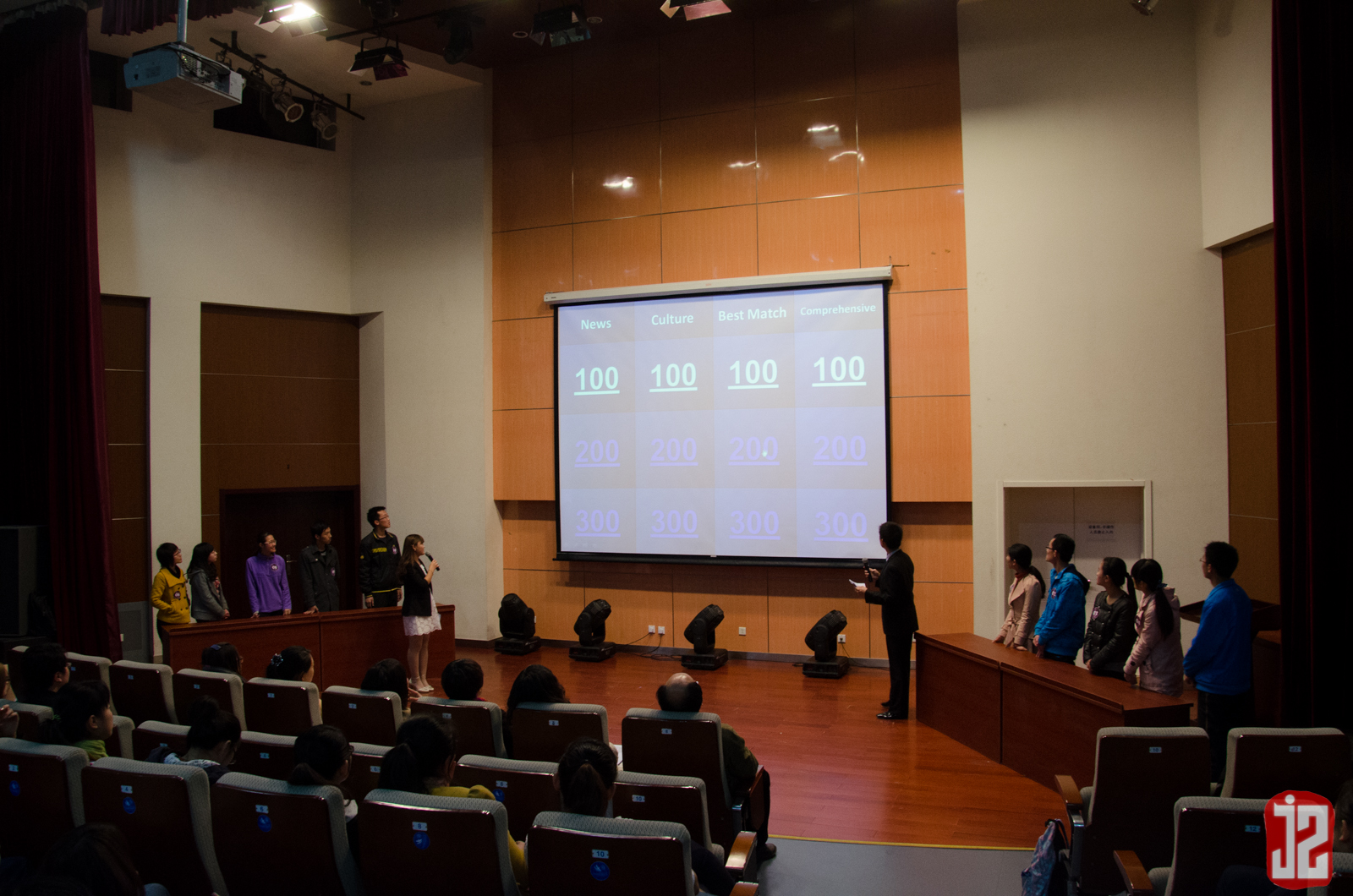 比赛分为三个环节,进行淘汰赛制,第一轮为分值选择题,十位选手按顺序轮流从题库中选择三题作答,题目分值分为100,200和300。要在有限的时间里审题并给出答案具有相当程度的挑战性,现场观众对成功给出正确答案的选手毫不吝惜自己的掌声,现场气氛十分热烈。
