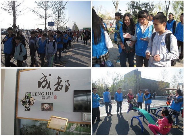 在儿童活动园区,志愿者与孩子们进行了丰富多彩的娱乐活动,体验着现代科技带来的便利。在成都园区,孩子们与大熊猫进行互动,借此机会,志愿者给孩子们讲解大熊猫的有关知识,希望孩子们从小树立保护濒危动物的意识。在游园结束之前,志愿者带领孩子们观看了花车游园节目,再次体会到北京园博绿色交响、盛世园林的主旨。