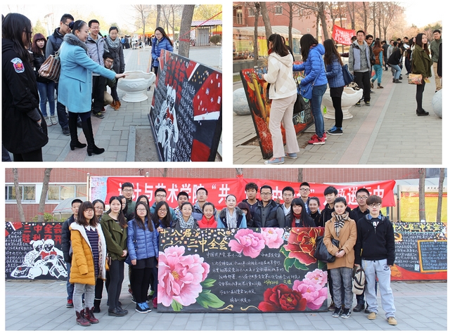 11月19日中午,设计学院在良乡校区开展了“共画三中全会”板报评比活动。2012级、2013级本科生团支部通过认真的准备,提交了各具特色,匠心独运的板报作品。同学们充分发挥想象力,将图案与文字进行了完美的结合,他们用手中的粉笔将十八届三中全会的精神生动的展现在师生的面前。活动现场各团支部分别对自己的板报进行宣讲,向路人讲解了板报的创作主题、思想和灵感,吸引了众多同学驻足围观。
