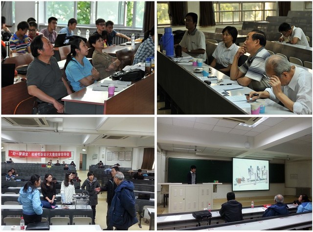 2013年9月22日、11月2日,我校先后召开第一轮和第二轮答辩会,两次答辩会共有72项选题参加。12月15日本届机械创新设计大赛的终审答辩会在中关村校区召开。每个项目组以PPT形式陈述。各组通过三维模型、运动仿真等形式展示了自己的结构方案,介绍了技术背景、创新点等。针对学生的答辩内容,评委老师们从不同方面进行点评,提出问题,并与学生互动讨论过程中也教授了学生如何进一步修正完善。
