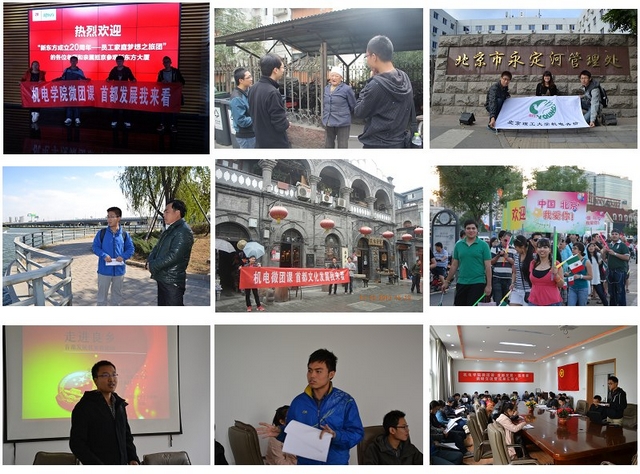 在“首都发展我来看”活动中,同学们围绕十八大提出的经济建设、文化建设、社会建设和生态环保建设等,深入新东方集团、良乡东羊庄社区、天桥演艺区、麦子店社区和永定河等地,进行了实地走访和网络调研,并撰写了《永定河流域水质植被生态文明建设调研报告》等四篇调研报告。在调研成果交流会上,同学们表示在党的十八大后,首都经济发展转型进一步加速,生态环境持续改善,新农村建设成果丰硕,传统文化再放新光,多元文化魅力四射。