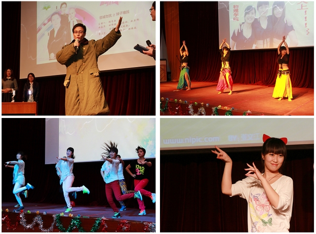 同学们自导自演的小品《非诚勿扰之妹子难找》、《三顾茅庐现代版》、《招聘会》表演的惟妙惟肖,别出心裁的服装和幽默诙谐的台词令台下的观众爆笑连连。《肚皮舞》的表演给大家带来了一股异域风情的感受,表演者婀娜的身姿赢得了台下阵阵掌声。舞蹈串烧《穷开心》《The fox》《最炫民族风》等以滑稽夸张的动作,燃烧起现场观众的无限激情,将晚会气氛推向了顶峰。