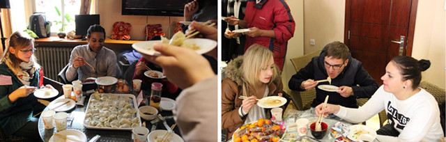 包饺子是中国年夜饭的传统活动,学生们抢着和老师们一起洗菜、和面、拌馅儿,和老师们学着包饺子,他们中很多人都是第一次包,包出的饺子也像模像样。他们兴奋地展示自己亲手包的饺子,体味着中国人欢欢喜喜、团团圆圆过大年的心情。饺子出锅后,老师和同学们一起,围坐在电视机前,一边观看2013年春晚的精彩节目,一边享用着自己的劳动果实,一边畅谈着过去一年的收获以及对来年的美好祝愿,非常开心。通过参加这些丰富多彩的活动,使得在北理的外国留学生们深切地感受了中国年。