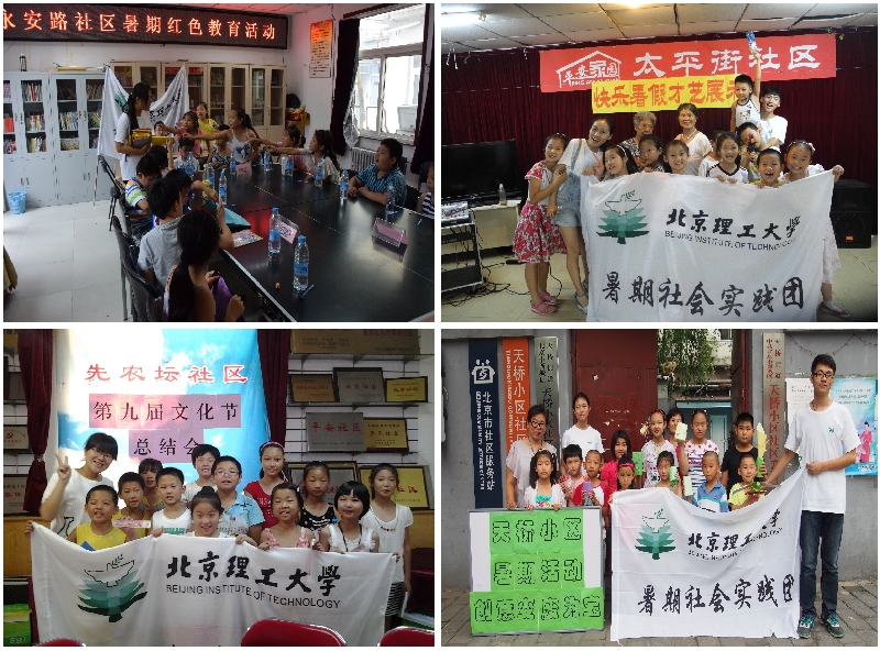 在为期一个月的实践中,同学们在各自领导的带领下逐步了解并熟悉了自己的工作任务。天桥街道下辖八个社区,每个社区分配了两名实践团成员,同学们充分发挥主观能动性,每个社区均开展了2个以上的自主活动,从策划撰写到物资购买再到组织实施,完全由社区工作的同学完成,,包括天桥社区的“缤纷橡皮泥大赛”、香厂路社区的“我是创意小厨手——爱心佳肴比赛”、留学路社区的小学生素质拓展活动、永安路红色教育活动、禄长街科普青少年活动、先农坛暑期观影活动、虎坊路“亲自”故事大赛、太平街“快乐暑假才艺展示”活动等近二十项自主活动。与此同时还协助各社区的青教主任开展本社区的传统活动近五十项。丰富多彩的活动获得了社区青教主任和社区居民的广泛认可,整个团队的各项活动忙碌但有条不紊地进展。