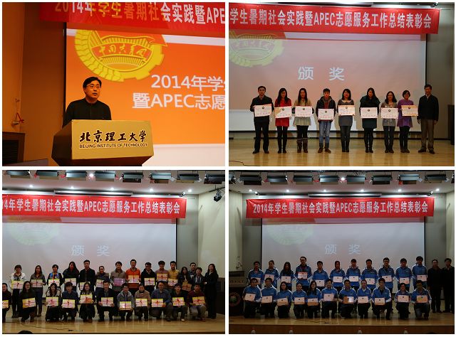 在今年,各实践团围绕“传统文化教育”、“专题社会调研”、“志愿公益服务”、“深度体验观察”、“探寻校友足迹”五种组织模式开展了丰富多彩的社会实践活动。校团委书记蔺伟作2014年学生社会实践和APEC志愿服务工作总结。
