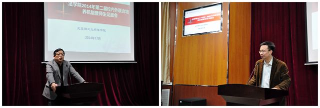 法学院副院长李寿平介绍了法律硕士专业学位研究生培养的重要意义和基本要求,总结了法学院在法律硕士研究生培养方面取得成绩及其存在的问题,肯定了校外导师在我院法律硕士研究生实务能力培养方面的重要作用,结合法律硕士研究生培养方案对全体校外导师地出了三点要求:希望校外导师能够更深入地参与到法律硕士研究生毕业论文的指导工作中去;并在工作之余更多地走入课堂,将自己丰富的实践经验传授给学生们;同时还应帮助同学们树立正确的人生观和就业观,将双导师制的根本目标落到实处。
