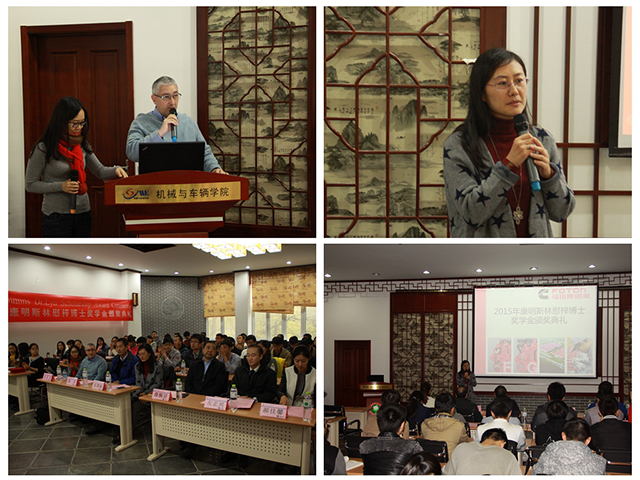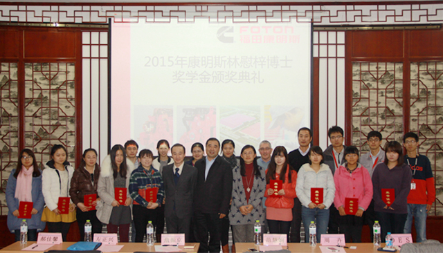 2015年11月10日,米兰milan官方网站机械与车辆学院2015年度康明斯林慰梓博士奖学金颁奖仪式在中关村校区车辆重点实验楼报告厅举行。出席本次颁奖仪式的有北京福田康明斯发动机有限公司党委书记詹振京、北京福田康明斯发动机有限公司人力资源部总监范慧娴、北京福田康明斯发动机工厂厂长 DES 、ISG 发动机技术总工周卉、机械与车辆学院党委书记左正兴、奖学金评审委员会主任郝佳馨以及北京福田康明斯发动机有限公司的其他嘉宾。