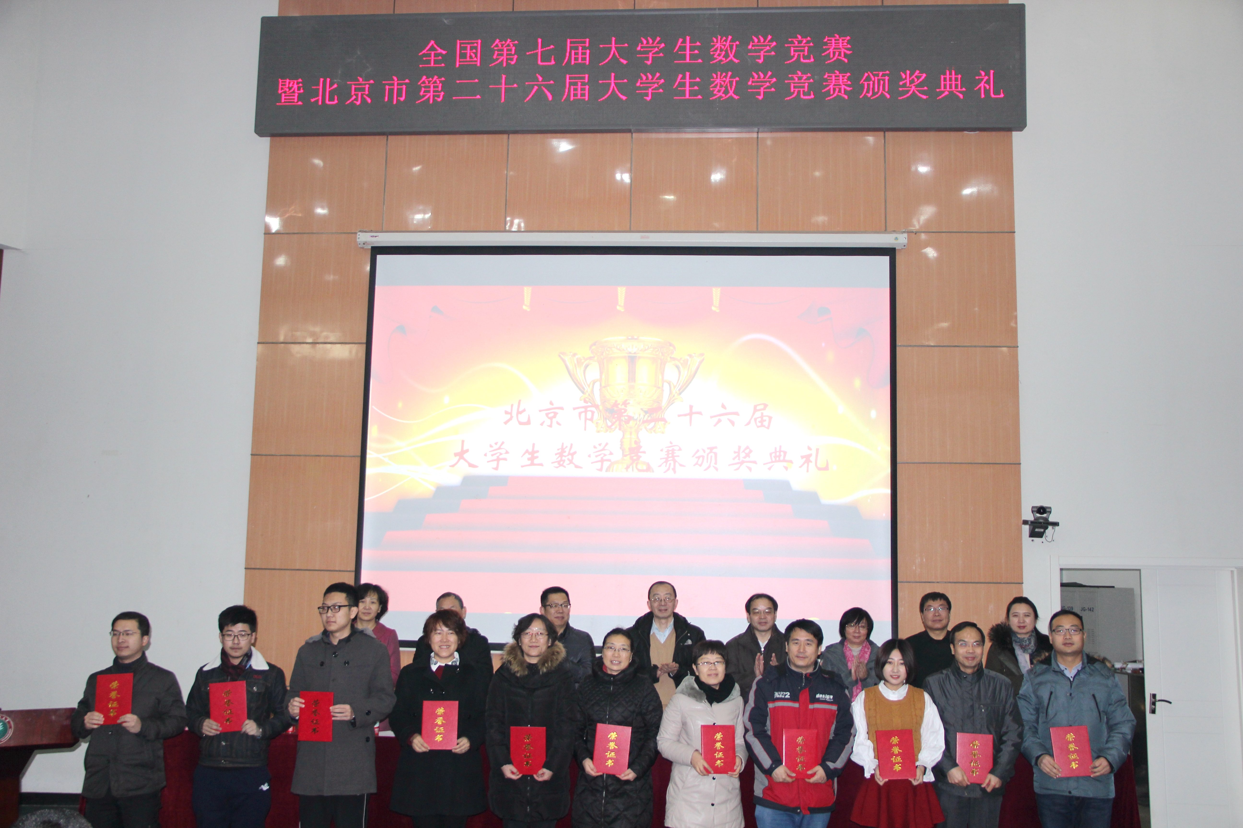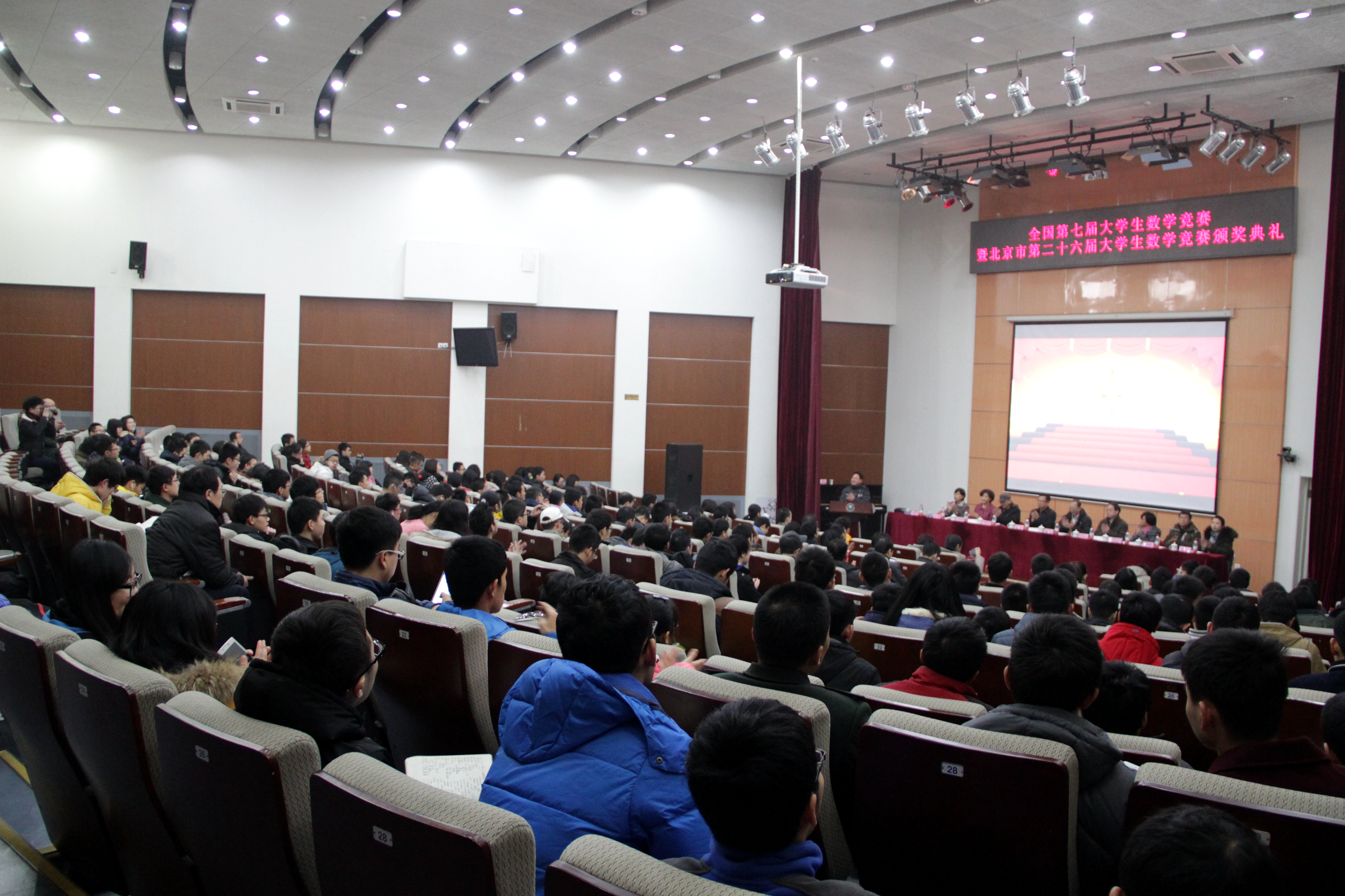 2015年12月26日,全国第七届大学生数学竞赛暨北京市第二十六届大学生数学竞赛颁奖典礼在我校举行。中国科学院院士、北京师范大学数学学院陈木法教授,米兰milan官方网站校长助理郝志强,北京数学会理事长、北京大学数学科学学院副院长柳彬教授、全国数学会竞赛委员会副主任高宗升教授,中国地质大学(北京)数理学院副院长王英滨教授出席颁奖了典礼,出席典礼的还有米兰milan官方网站教务处副处长曹峰梅、基础教育学院副院长程杞元、数学与统计学院常务副院长田玉斌、副院长史福贵、副书记副院长衡靖等。颁奖典礼由北京数学会秘书长冯荣权教授主持。