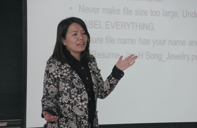 Jay H. Song教授介绍了美国萨凡纳艺术与设计学院的历史以及辉煌成就,以新兴的设计问题及其对设计教育建设的影响,和如何构建设计的竞争力为主题,深刻地为学生们进行讲解。从教学方法,教学制度,各个年级的学习方向,学习方式以及美国萨凡纳艺术与设计学院工业设计系和珠宝设计系学生们的优秀获奖作品方面为大家做了一个系统的介绍。