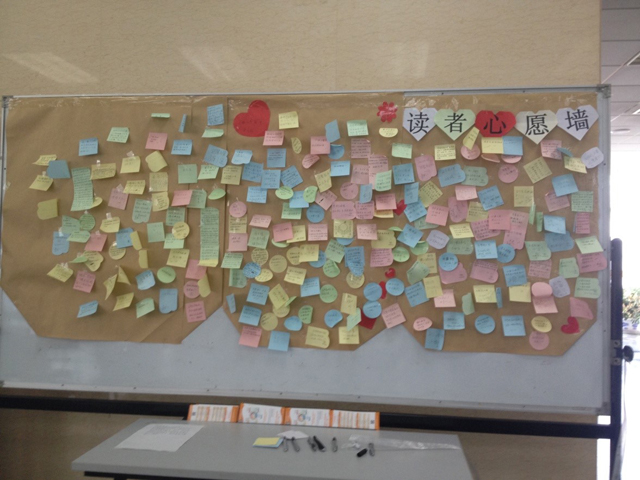 为了解广大读者对图书馆的需求与情感,畅通图书馆与读者沟通渠道,图书馆在一层大厅专门开辟了“读者心愿墙”,倾听读者心声。广大读者热烈回应,畅所欲言:“希望图书馆可以订购更专业的经济期刊”,“希望图书馆可以提供温馨的咖啡厅”,“图书馆我的家”等等,读者的声音不断汇集于此。图书馆党总支书记郑炎非常关注读者留言,要求将其分类总结予以落实,不断地提升服务品质,优化图书馆的环境。