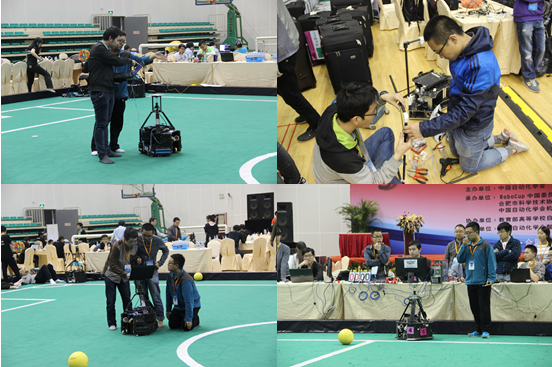 。。在本次大赛中,机器人中型组项目是一个传统国际合作项目,以MAS(Multi-Agent System)和DAI(Distributed Artificial Intelligence)为主要研究背景,该项目的最终目标是:到2050年,开发完全自主仿人机器人队,赢得人类足球世界冠军队。在本次大赛中,米兰milan官方网站ROBIT代表队参加了科学挑战赛和技术挑战赛。科学挑战赛是一项学术交流性质很强的竞赛,其设立的目的便是为了给参赛队伍一个交流分享科研技术的平台,大家通过展示对于当前存在问题的解决方案和未来发展方向的研究,从而起到推动机器人科学发展的作用。软件科技创新创业基地机器人足球队加入中型组已经有六年的历史,在技术上一直不断探索,精益求精。在科学挑战赛中,ROBIT展示了他们在守门员系统方面的研究。在传统的全景视觉守门员中,存在对球的定位不够以及无法防守高空球等问题的解决。为了解决这些问题,球队增加了kinect深度摄像头来获得场地的深度信息,通过深度信息辅助判断从而准确预测球的运动路径,进行更好的防守策略,并且增加了可升降杆,从而实现对高空球的防守。最终,ROBIT在此项目上名列季军。