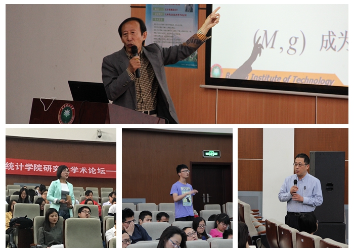 为了加强研究生之间的学术交流,活跃学院师生学术氛围,加强对研究生们科研能力和创新意识的培养,训练研究生表达学术成果以及在学术交流中敢于质疑、善于发现的能力,5月7日上午9点半,数学与统计学院第五届“宽之藉数,厚以博学”研究生学术论坛如期在良乡综合报告厅举办。本届论坛邀请了数学学院孙华飞教授进行学术报告,出席此次论坛的还有数学与统计学院蒋立宁教授、田玉斌教授、王一夫教授,王国亮老师,由他们和孙华飞教授共同担任此次学术论坛评委。数学与统计学院全体研究生参加了此次论坛。